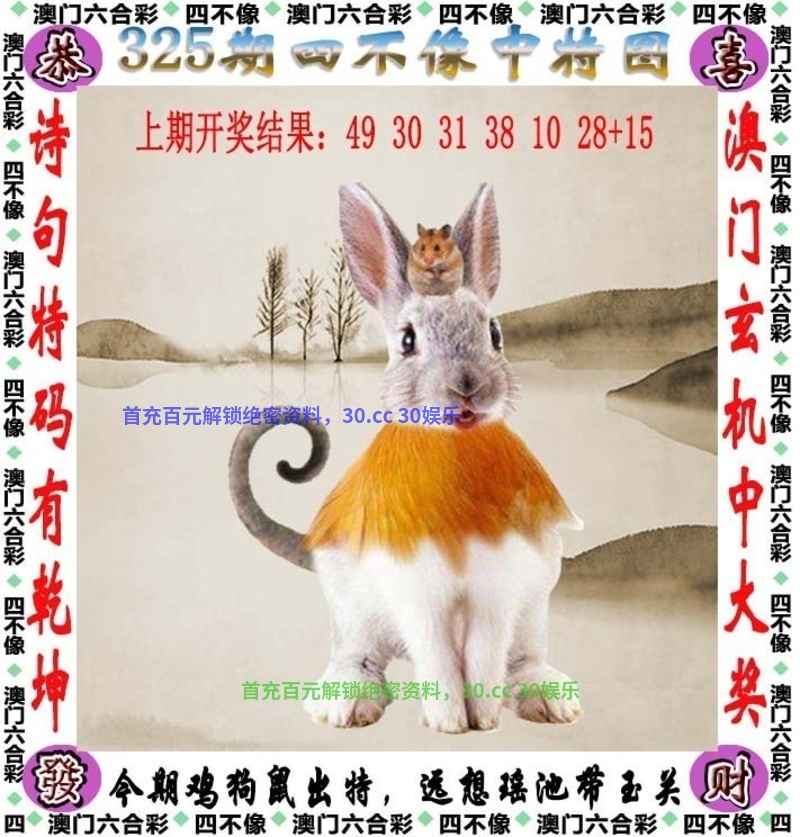 325期:今期鸡狗鼠出特,远想瑶池带玉关开:虎04准 |